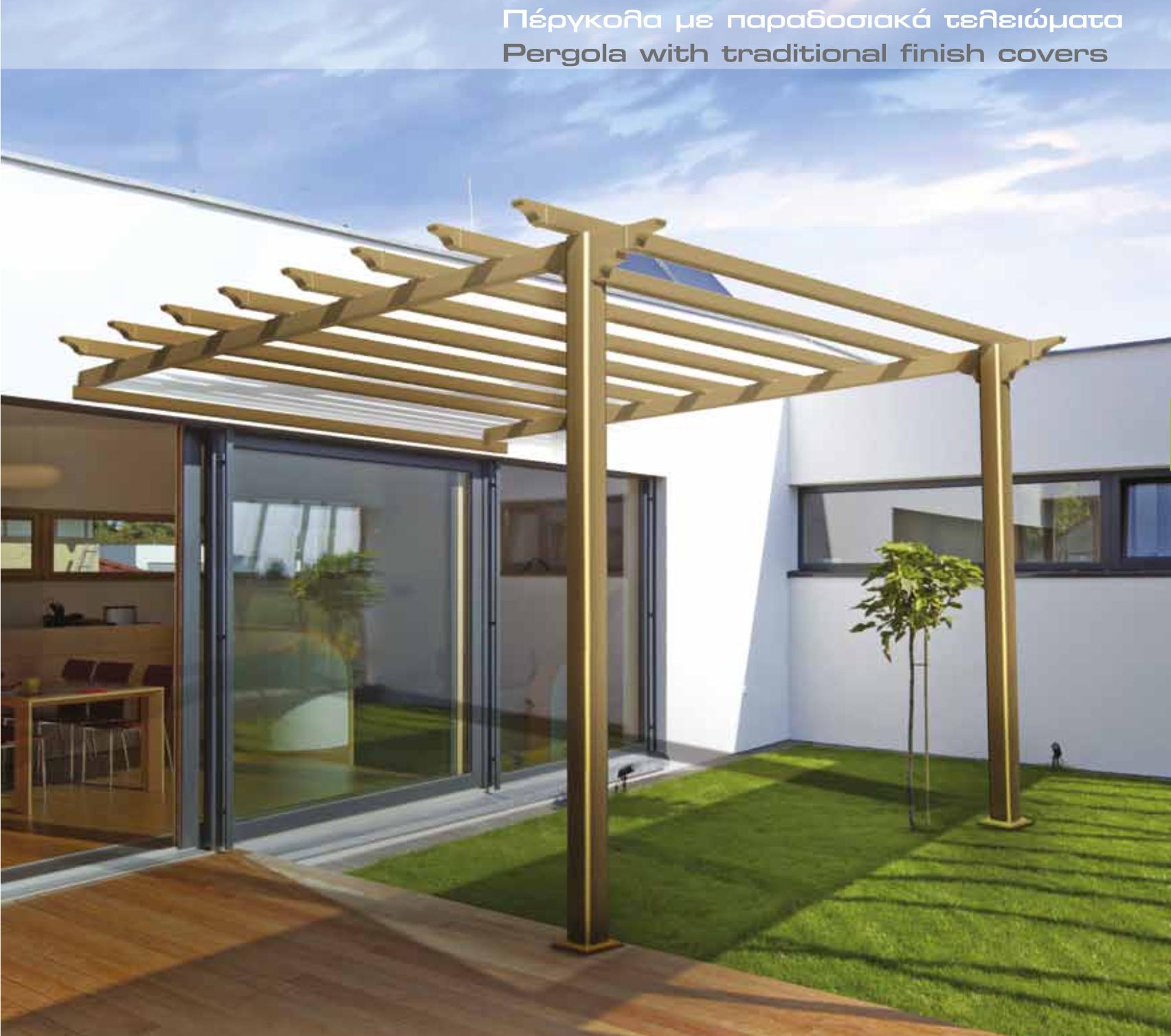 συντήρηση. Η πέργκολα αλουμινίου διατίθεται σε μια μεγάλη ποικιλία χρωμάτων ηλεκτροστατικής βαφής και χρωμάτων απόχρωσης ξύλου, προσδίδοντας της ακόμα πιο παραδοσιακό χαρακτήρα και πιο πιστό αποτέλεσμα. Μπορεί να δεχθεί πολυκαρμπονικά φύλλα ή πανί για αισθητικούς αλλά και χρηστικούς λόγους, καθώς προσφέρει την απαραίτητη σκίαση, προστασία από τις καιρικές συνθήκες και από την βροχή δίνοντας παράλληλα μια άλλη όψη με πιο μοντέρνο αισθητικό αποτέλεσμα.